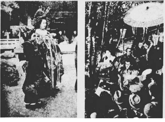 写真の陳列してある店は、大抵入口の左か、右の一寸奥まったところが車座になってゐる前に、池か何かを作り、金魚や、緋鯉を泳がせて、一寸した花などが生けてある。客はこの写真を見て敵娼をきめるのである。